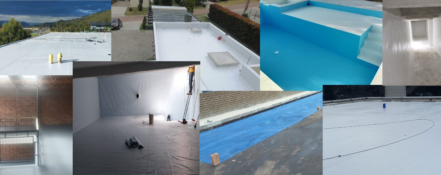 Impermeabilizaciones en cubiertas, plazoletas, tanques de almacenamiento, fachadas.